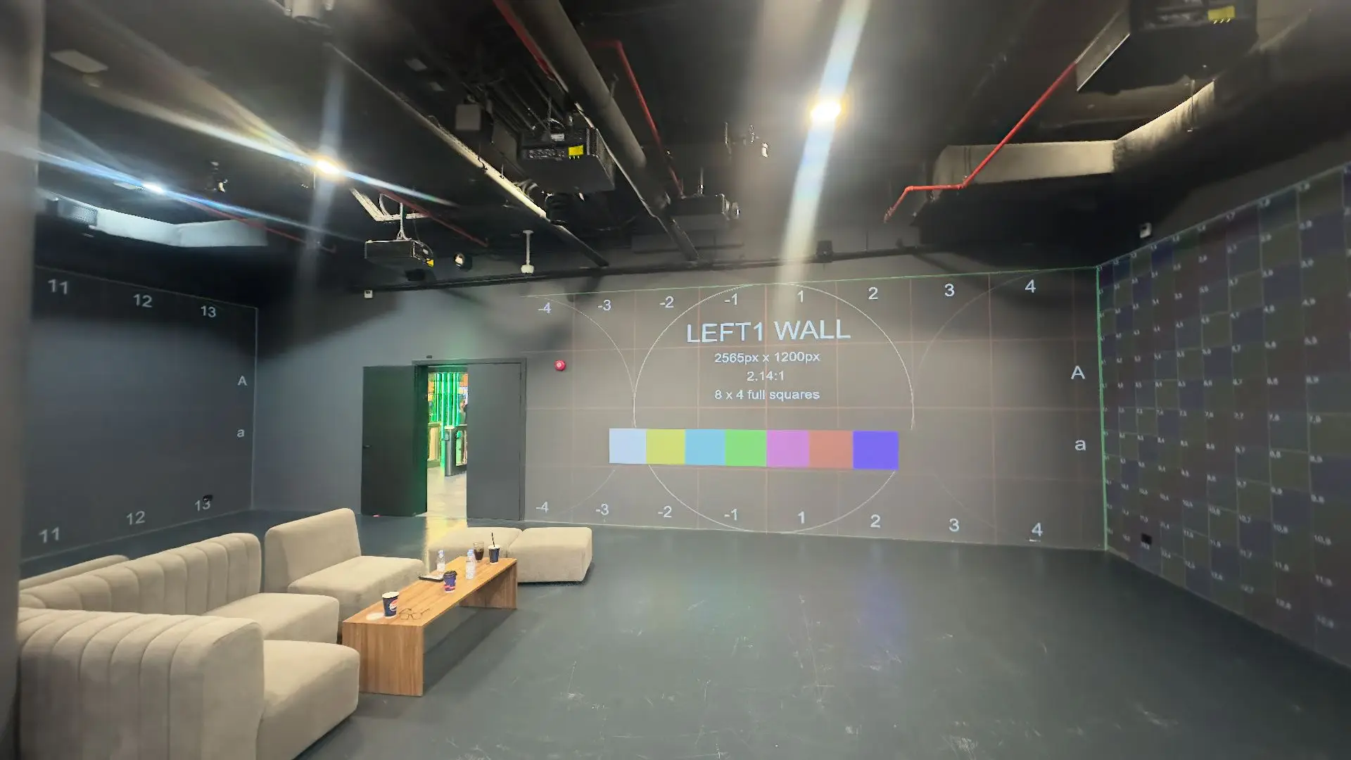 I visited the location once, where it became clear that the room had a lot of alignment and media server issues. As the client did not invest in the callibration of this system, we were not able to finally deliver the content even though everything was finalised.